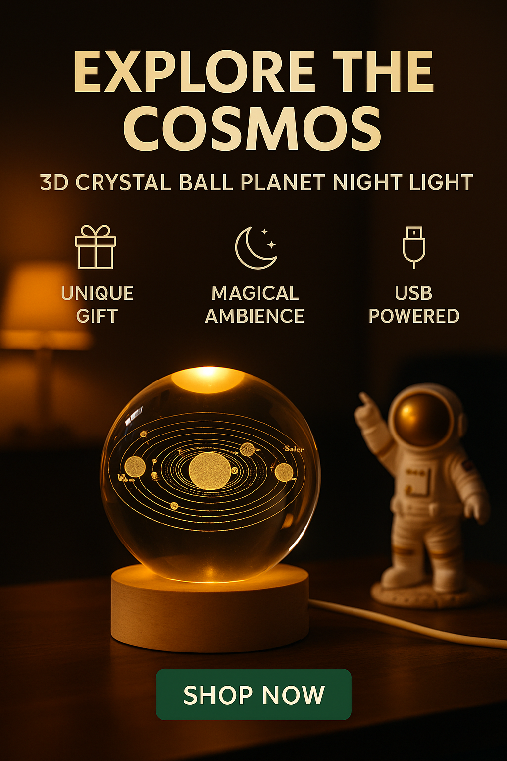 Discover the magic of an entire universe captured inside a crystal with our CosmicGlow™ 3D Laser-Engraved Solar System Lamp — a mesmerizing piece designed to inspire, relax, and illuminate your world. 🌌